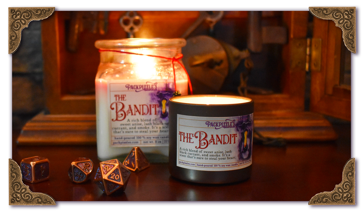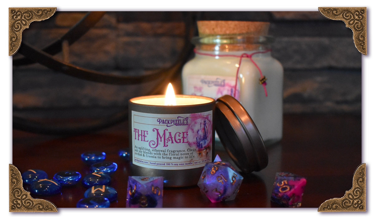 'The Lore Master' is an amazing blend of bright citrus and spice scents that mellow into earthy oakmoss, leather, and deep musk. Powerful without being overwhelming, it adds an exotic, ancient feel to your table.